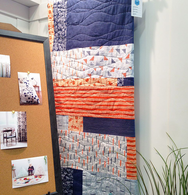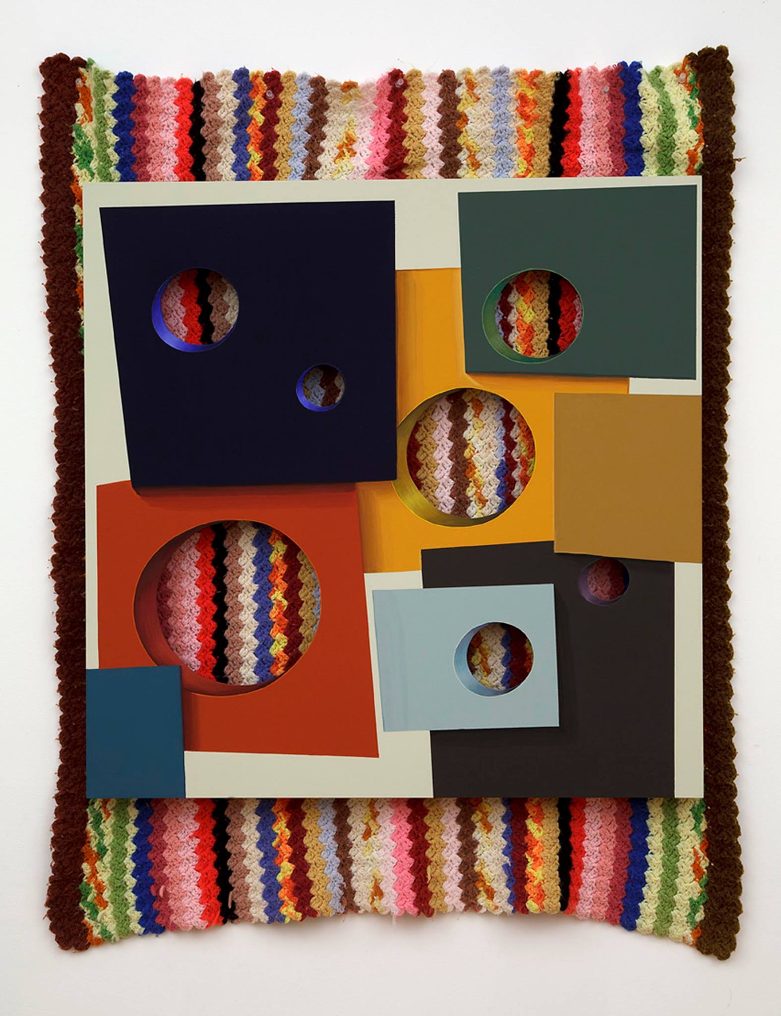 “…the artist takes otherwise repetitive technique and elevates it through a study of improvisational quilting and abstract expressionism — exploring the natural tension between free expression and traditionally domestic space both as to craft and creativity. Both spontaneous and beautiful, “Lucky” also satiates utilitarian need.”
